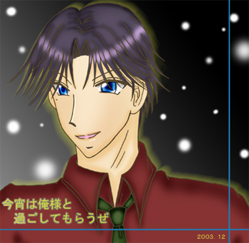 境月様からクリスマスイラストを頂いてしまいました!嬉しすぎです!!跡部さん!この方の性格大好きです(笑)俺様で何気に面白いキャラというイメージが私の中では強いです(友人のおかげでギャグキャラになりつつあります)私の中ではこの方受です!何となく兎っぽいキャラですし、某サイト様の太郎×跡のマンガを見て跡部受になりましたv 境月様、素敵&色っぽいイラストありがとうございますv